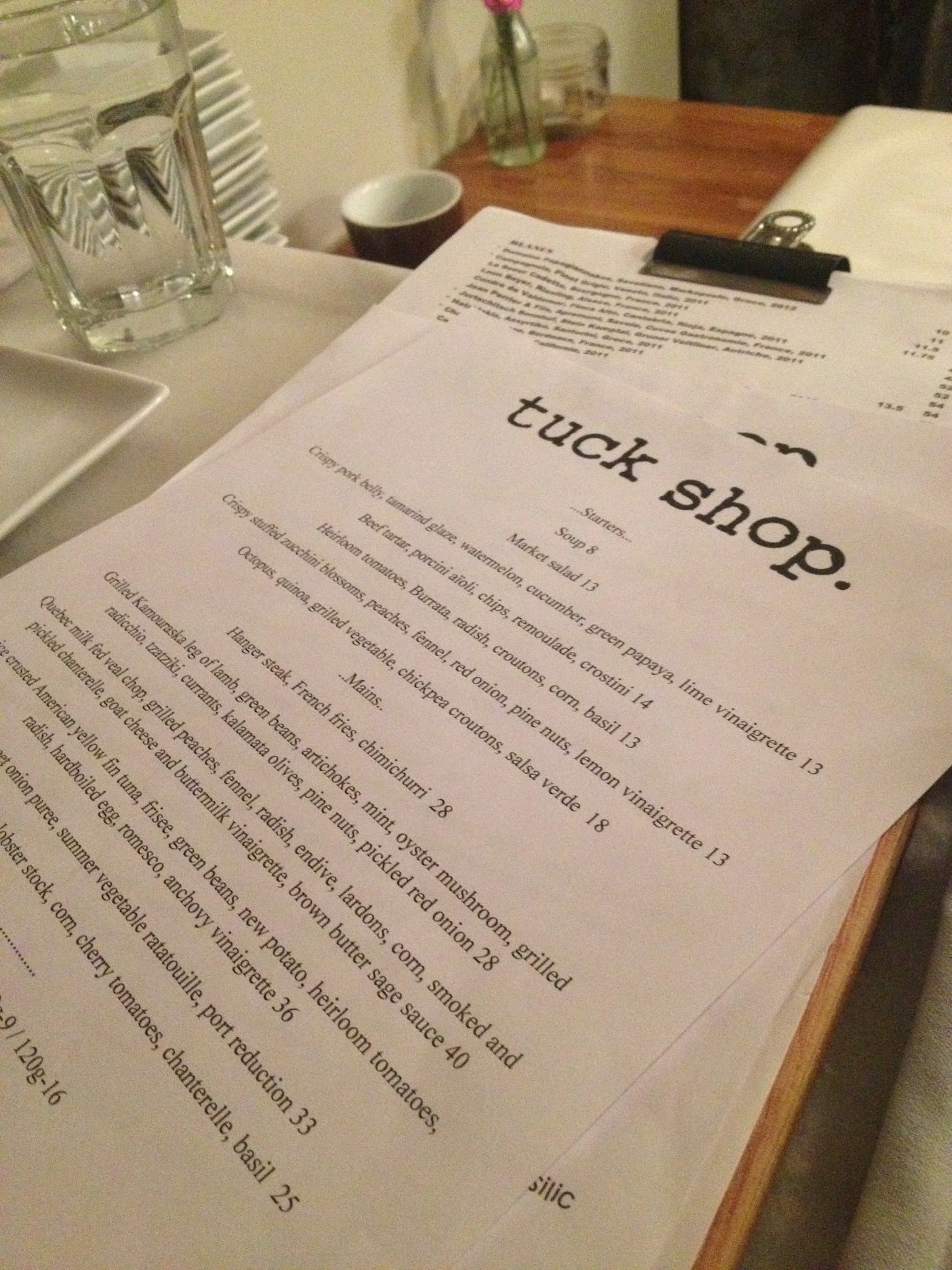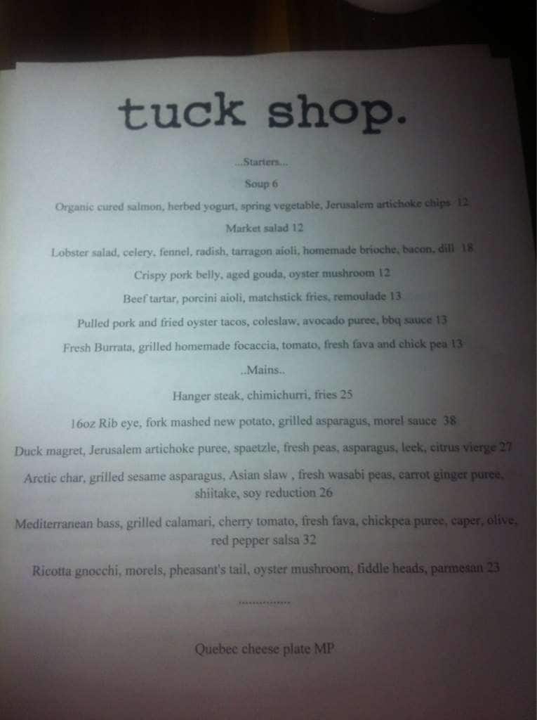 development system Menu of Tuck Shop - Montreal, Quebec