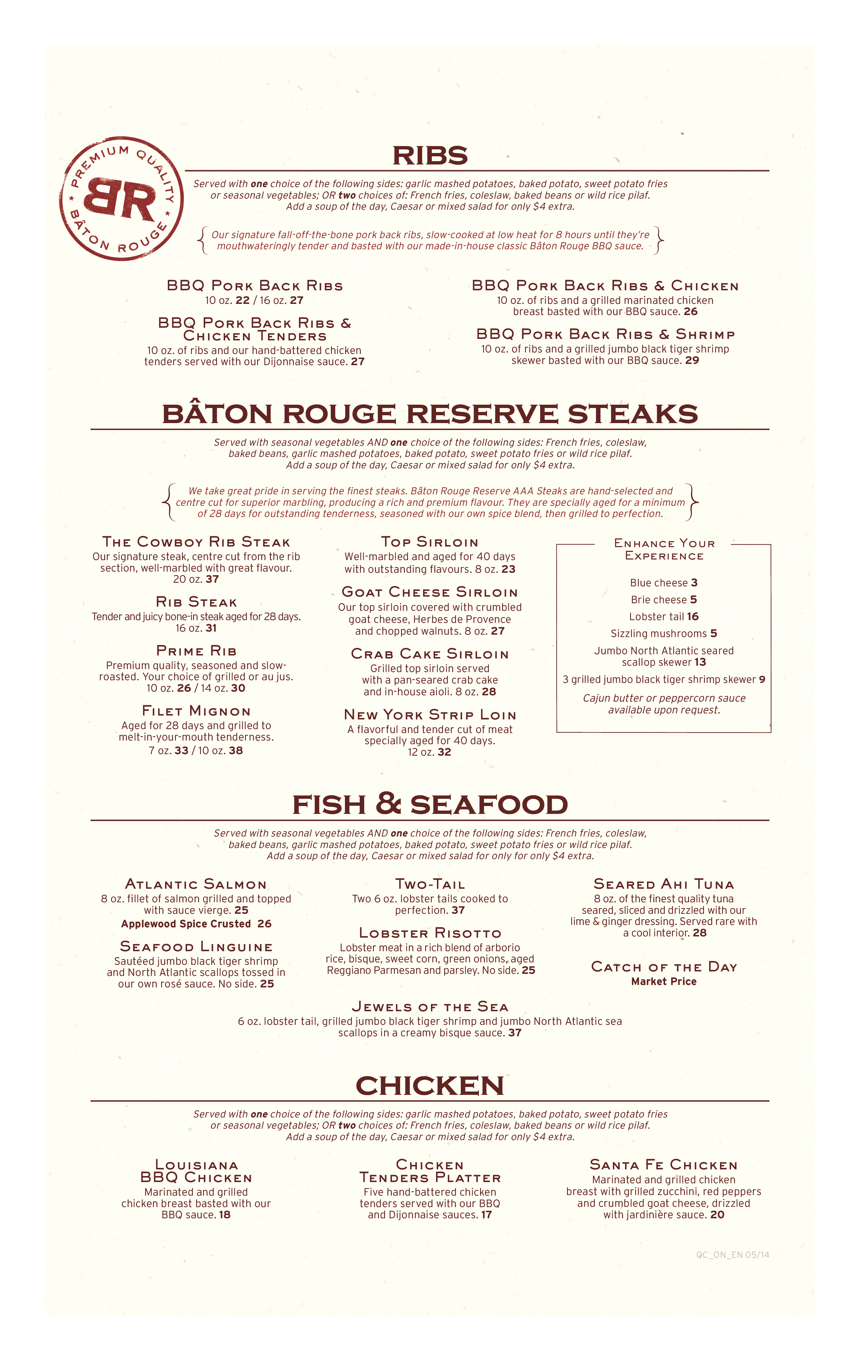 Bâton Rouge Steakhouse & Bar – Galeries D’Anjou offers a cozy dining experience in the heart of Montreal, Quebec. Renowned for its mouthwatering selection of succulent steaks, tender ribs, and a variety of decadent desserts, it’s the perfect destination for both casual dinners and special occasions. Indulge in signature cocktails at the bar or enjoy a hearty meal in the warm, inviting atmosphere.