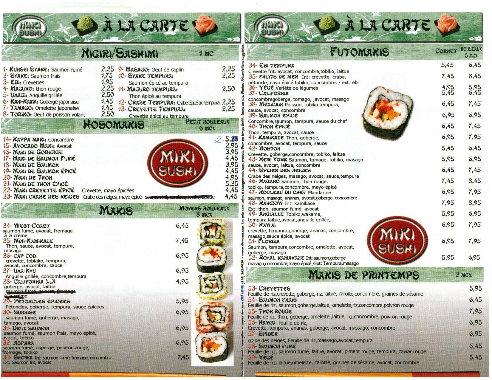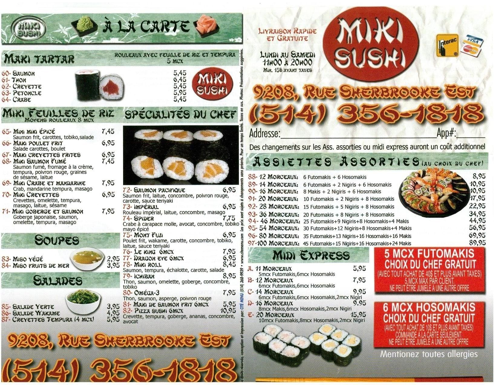 Nestled in the heart of Montreal, Miki Sushi offers an authentic Japanese dining experience with a Canadian twist. Renowned for its fresh, high-quality ingredients, the menu features a wide array of classic sushi rolls, sashimi, and innovative dishes crafted by skilled chefs. Whether you’re seeking a cozy dinner or a quick, flavorful lunch, Miki Sushi’s welcoming atmosphere and exceptional service promise a memorable meal.