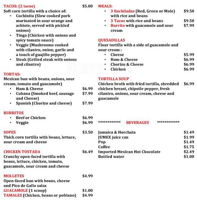 I can say that I have been to this place more than 50 times since 2018, I have seen the evolution of many things, many dishes and many flavors, as well as the change of the staff, etc. The only reason we go there is because my partner loves the molletes ... and I am a big fan of the tortilla soup and tacos. the desserts tres leches cake and the bakery is delicious. Always when we go to this place we usually order the same dishes, today was no exception, I asked for an extra chorizo to be added to the molletes, the person who was attending me said no, I told him that they always add an extra chorizo, never was a problem before in charging me for it, However, he refused to do it, I understand that many times the dishes are not modifiable, but adding an extra and paying for it I think it is a benefit for the restaurant to generate more sales, or honestly I don't understand why they can't make that kind of changes. As an extra advice , it would be really nice to had the option to buy single tacos or add a taco in an order. George ;) Read more