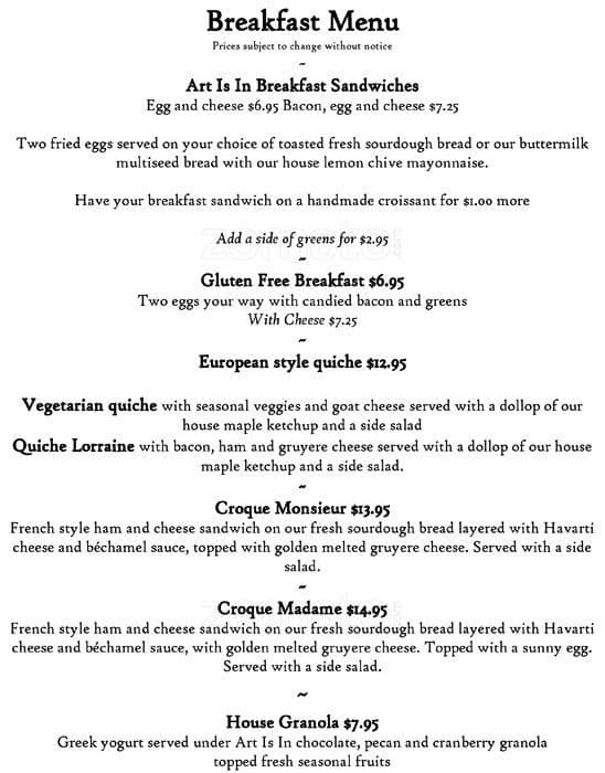 Art Is In is usually incredible, but the service for our group of 5 this weekend was the slowest it’s ever been. Each plate came out separately (with a long time in between each one), with the final plate coming to the table 55 minutes after ordering. It seems the ... reason for the bad service was they had just opened the patio, but it should just not have opened if they weren’t going to be able to accommodate all customers. The food was great but for the high price point, I expect more from Art Is In. There was nothing done to make our experience any better - not even an explanation or apology. Read more
