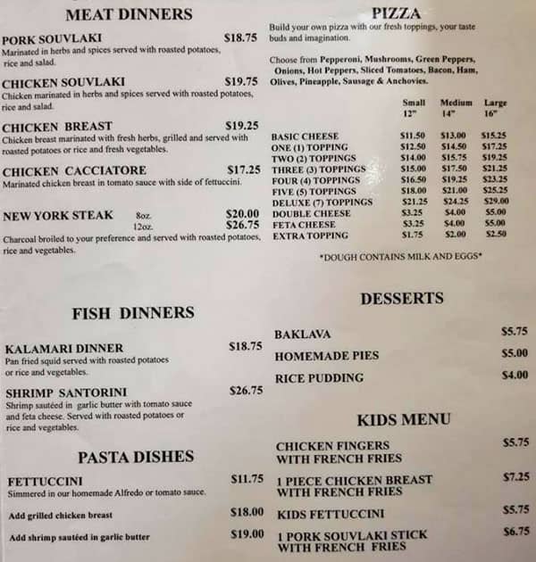The food is always plentiful and fresh. Great family restaurant. I had their pita souvlaki special and it was fresh, delicious and a great price. Service was attentive and with a smile. Great small town family restaurant, known locally for their pizza and Greek salad.