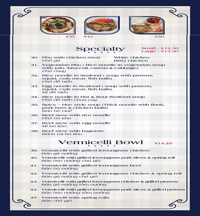A casual pho diner. First time we came here. We were a 6-person group and they only had tables for 2 and 4. They didn't know what to do with a larger group. After some hesitation from the waiter, they joined 2 tables. The service was good otherwise . ... The food was good, although a bit pricey. We had the seafood pho, the spicy pho, and the lemongrass grilled chicken. All good. We enjoyed our lunch and will probably go back. Read more