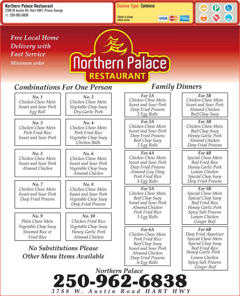 Northern Palace in Prince George, British Columbia, stands out as a gem for authentic Chinese cuisine in the area. Renowned for its diverse menu that includes both traditional and innovative dishes, this restaurant prides itself on using fresh ingredients to deliver exquisite flavors. With a warm and inviting ambiance, it is the perfect dining spot for family gatherings or intimate dinners, offering a memorable culinary experience to all its guests.