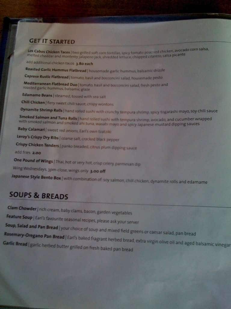 development system Menu of Earls Regina South - Regina, Saskatchewan