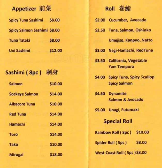 Sashimi always fresh and reasonable price, compared with first open menu. Its cozy and small place. I love their geoduck nirgiri sushi, cheap/ crunchy/ fresh. We always order at least one dozen per person. But their lamb chop and tempura are not as good as before. Their roll always ... wrapped it too loose, rice and ingredients all falling apart. Read more