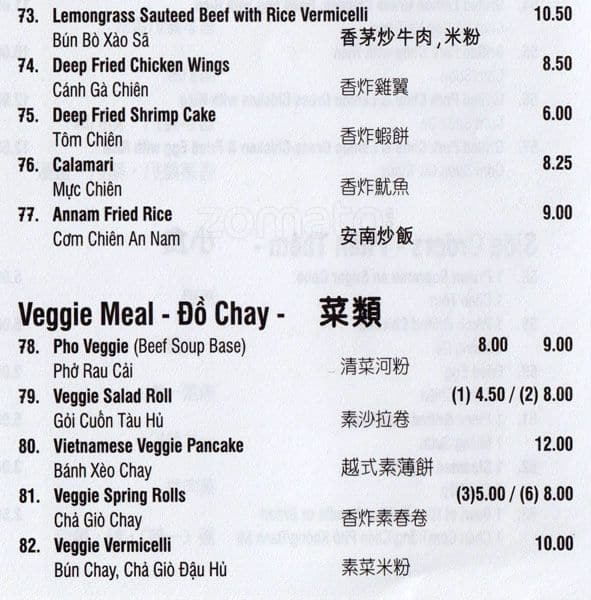 I was supposed to visit John 3.16 next door but was turned down by the crowd and the line up, even at 8:45pm on a Monday. An Nam has been my regular for the last few years. The menu has no surprises as most of the items are very standard ... Vietnamese food in Canada. The waitresses have always been attentive and good mannered. Eat, pay and leave, I had want I wanted. Always no complaint. They did check my vaccine proof as I entered. Read more