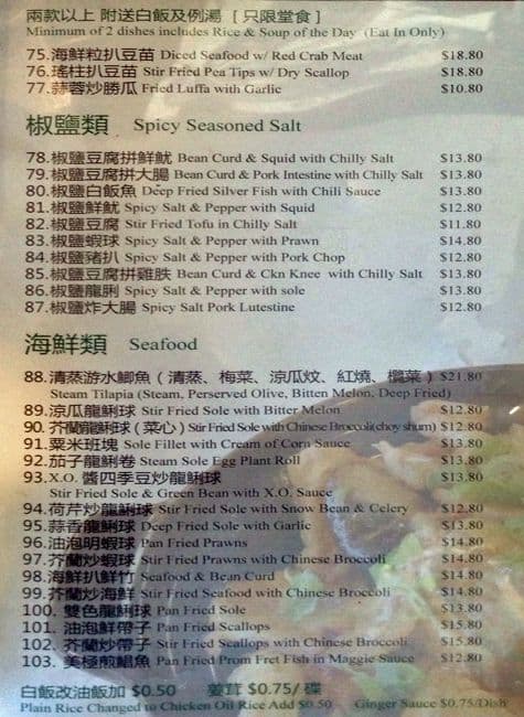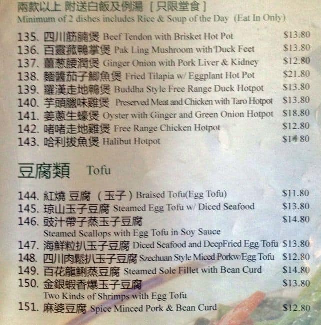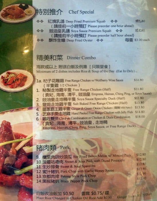 I Went there for lunch and dinner couple times. I found out that, their weekend chef's cooking and waitress are better than week days. Their portions are getting smaller than before with $17 + per dish. My favorite dishes are soy chicken, mixed chopped seafood on deep fried egg ... tofu, hot & sour soup and honey garlic ribs. Read more