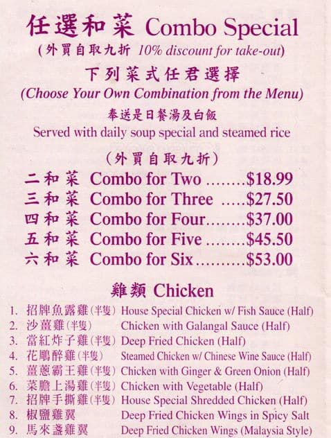 Very good and authentic Hong Kong style chinese food. The prices are affordable and portions are generous. The waitstaff is polite and service is quick.
