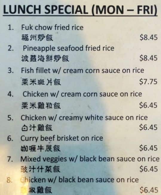 Great prices during lunch. Usually under $12 for a large plate. Best crispy beef and broccoli chow mein. Food is always consistently yummy and service is 10/10. They are extremely kind, attentive and we look forward to supporting this family owned restaurant.