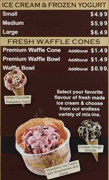 Online on the website it says you can get free mix ins and we used the online coupons. We ordered 4 1 litre tubs and the price we were supposed to pay was $30 instead of $45. When we got there the lady told us we had to pay $45. ... She told us that she had to go buy the menu. She we told her that we had a deal online. We even showed her the recipe that we got online about it. All she told us was "sorry but it's $1 a mix in and $10.95 for a litre". What a joke. I would never recommend going here again. Read more