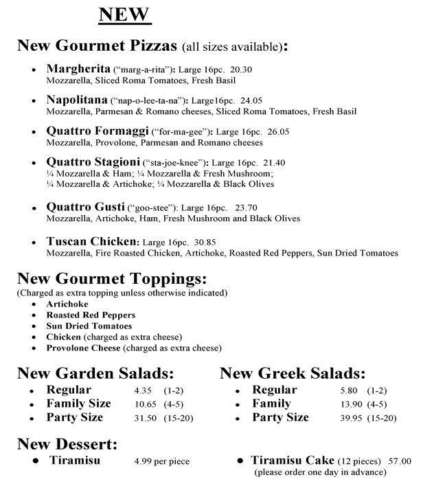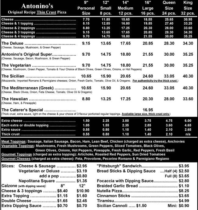 development system Menu of Antonino's Original Pizza - Tecumseh, Ontario