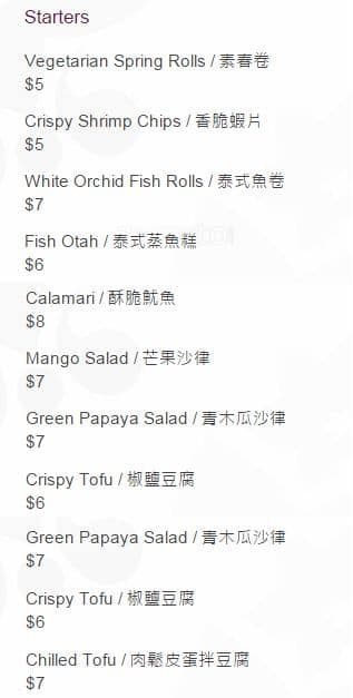 development system Menu of White Orchid - Thornhill, Ontario