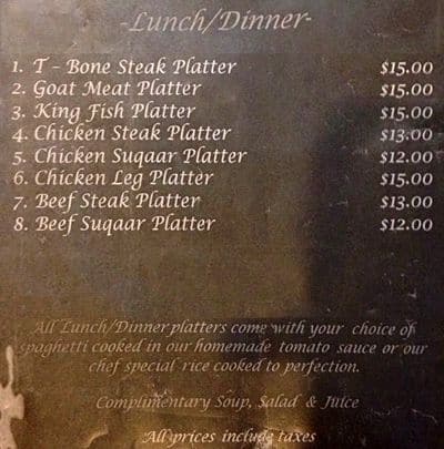 Very good food, enviroment too. The food is by people from Somalia. I think that is very good food to eat frequently. Healthy, nd the price was cheap. I like a lot this place nd its food. The only problem was that they dont have all the dishes of the menu to ... do. Only 2 options. Read more