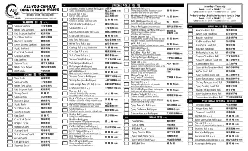 Reasonably priced AYCE lunch time menu. Food was good but not great. I wouldn't pay the dinner price for the AYCE here. The decor of the place and the customer service both could do with a bit off a facelift.