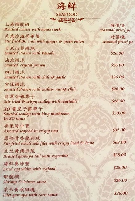 development system Menu of Crown Prince Fine Dining - Toronto, Ontario