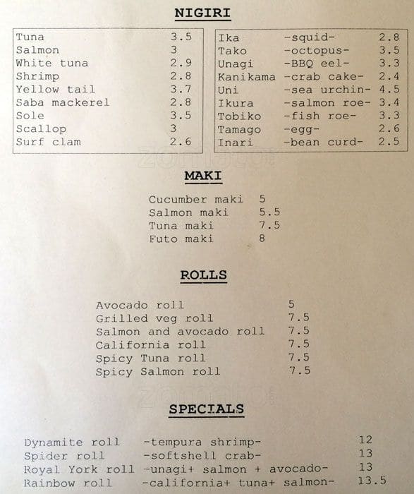 Food is fresh, dynamite roll is week, tobiyaki sauce on the royal york roll should not be there. Negi toro roll is good.
