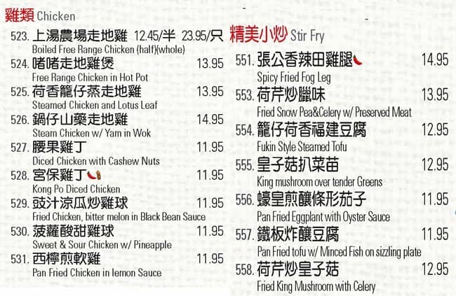 Tasty Cantonese style home cooking with a few fusion inspired items. Dishes are tasty and very reasonably priced. Wait staff speaks some English and are friendly towards non-Cantones-speaking customers. Menu is also in English and Chinese, but best to order with help from your Chinese friend the first time.