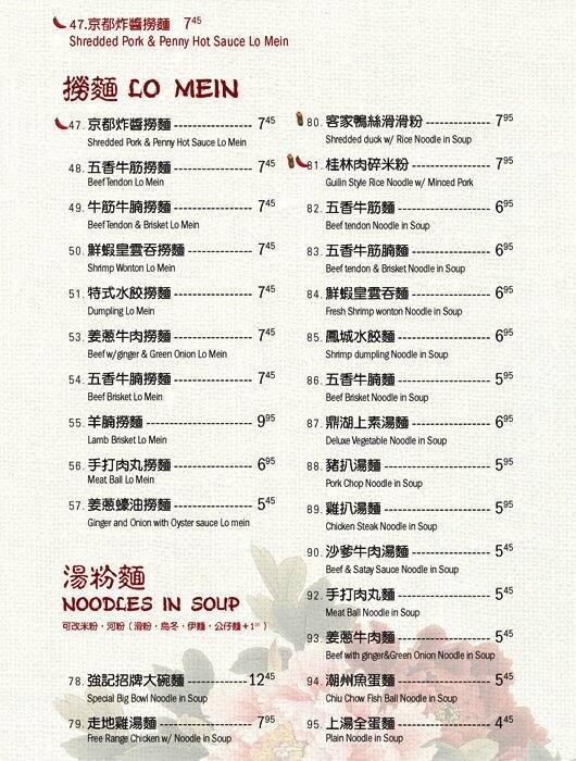 Aaron's Rating Chart Averaged 5 Star Rating rounded down. Overall rating - 3.25 Time: 7pm Date: Typical Wednesday Party: 2 Time to Seat : Instant Crowd Level : Medium Food / Quality Rating - 4 / 5 1st Dish : White pepper pork bone marrow soup with mustard greens, carrots, corn, radish, chinese mushrooms and tofu puffs. This soup is ... one of the signature dishes. 1st time visitors should try this dish. Soup seemed like it was boiled with pork bones first until it gave off a white tint with vegetables being added later on as to keep it fresh. Can easily feed 4 people, so bring friends. This dish goes well with any other dishes here. 2nd Dish : Satay beef with vermicelli hot pot Standard dish, with nice presentation in an actual ceramic pot. There is ample vermicelli but just a little lacking in beef. Taste wise, the satay sauce really works with the meat, but be warned you will get thirsty afterwards. Portion size was generally good for both dishes. Staff/Service Rating - 3.5 / 5 Given the low crowd level, service staff were able to seat us quickly and provide adequate attention when customers request refills/order/check. Staff did not seem enthusiastic but we're fine in meeting the needs of customer. Environment Rating - 3 / 5 Service areas for customers are kept mostly clean. Floors could use some mopping but tables are clean when customers sit down. Rear sanitary facilities could use some work and washrooms look like they could use some maintenance. Poor lighting in washrooms also detract from their environment score. Price Rating - 3 / 5 Price after tax and 12% tip - $40.34. Fair pricing given soup portion size. However, the satay beef and vermicelli bowl could have been a little cheaper. Other notes - we saw other people get an additional soup and dessert which appeared complimentary, but we never got it #Sadface. So not sure if it's based on what meals you order. Read more