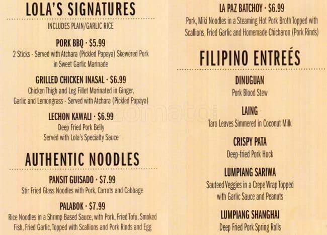 Very authentic Filipino food has at home cooked feeling, with her own pots and pans make you feel like you're sitting right in your Mom's Kitchen. Everything is made fresh and cooked right in front of you it is worth the wait