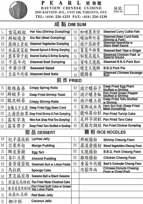 development system Menu of Pearl Bayview - Toronto, Ontario