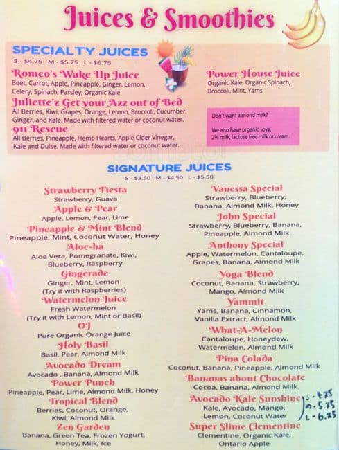 Romeo’s Juice Bar is a vibrant oasis nestled in the heart of Toronto, known for its refreshing and health-centric beverages. This trendy spot specializes in a wide array of smoothies, freshly squeezed juices, and wellness shots, all crafted from high-quality, natural ingredients. Its cozy atmosphere and friendly staff make it the perfect go-to for a nutritious boost any time of the day.