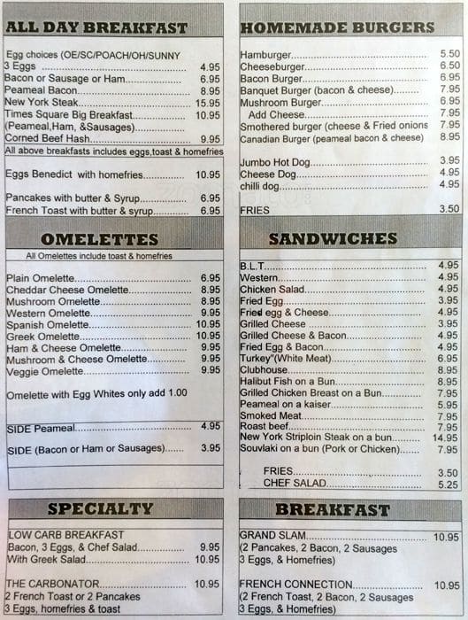 Times Square Diner in North York, Ontario, is a cozy culinary gem offering a nostalgic dining experience. Famous for its sumptuous breakfast and hearty American-style dishes, this diner presents a welcoming atmosphere reminiscent of the classic eateries of yesteryear. With a menu that boasts a variety of comfort foods, it’s the perfect spot for both locals and visitors seeking delicious meals and friendly service.