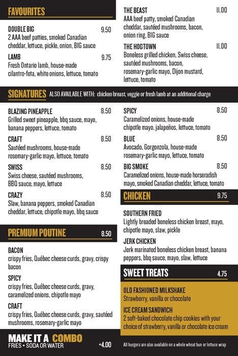 Big Smoke Burger in North York, Ontario, Canada, is a standout spot offering gourmet, hand-crafted burgers. This location prides itself on using fresh, local ingredients to create flavorful, satisfying burgers, signature sides, and hand-spun milkshakes. Known for its friendly atmosphere and commitment to quality, Big Smoke Burger ensures a memorable dining experience for burger enthusiasts and casual diners alike.