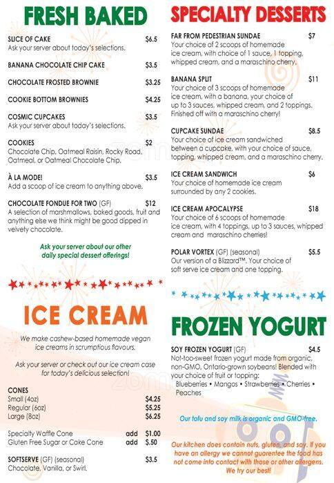 Definitely worth a visit for vegans. It is open till midnight which is great - with patio seating available. The street is quite buzzing and on a good day, patio seating is definitely great for the street view. We went for a Banana Split, Dorito Crusted Tofu and Mixed Root Vegetable ... Fries. Banana Split - good but I realized three scoops of ice cream and a banana is still a little too much for even two folks. So, think of that before ordering. They change the 3 ice creams every day. It was caramel, death by chocolate and marshmallow when we went. Marshmallow was supposed to be substituted by strawberry but they added another caramel instead of that - by mistake I suppose. Caramel was a bit sugary while Death By Chocolate was good. The whipped cream on the top was good. Dorito crusted Tofu - not that amazing. Unless you are a Doritos fan, you wouldn't probably enjoy it even if you are Tofu fan like me. Mixed Root Vegetable Fries - This was quite good even though it didn't look very appetizing. Overall, good place for late night eats for vegans but still could be better. Read more
