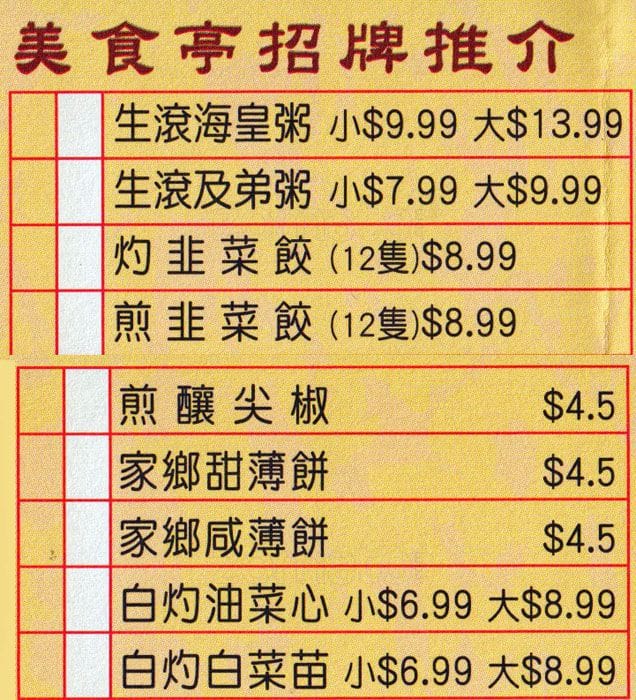 Recommended by two friends that this restaurant provides foods that worth a good value of money. After I tried, I would say, yes it’s worth a bit more than 4. My children loves the mango black glutinous rice rolls, we ordered the two. The beef bone was not as what ... we usually eat, it’s chewy, seemed marinated and fried with a layer of sweet sauce, I love them as they were not overly softened。Turnip rice cake is my favorite, it has chunks of juicy turnips in which added more texture and flavor, definitely should try and the jinger cake is also wonderful. Small Congee was enough for 5 persons, good portion. What I could ask to improve is the beef stomachs, as it’s too much chewy, which I prefer a softer texture. At last, a 12% tip is automatically added to the bill. Read more
