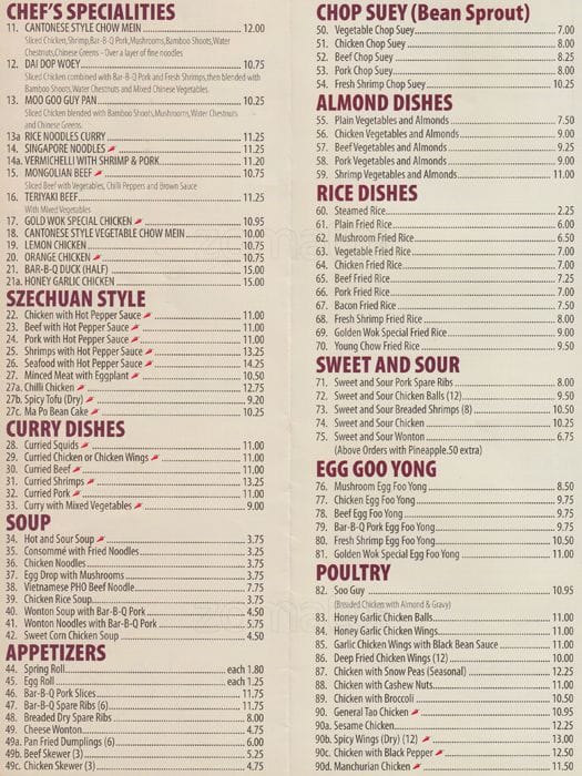 Golden Wok is a cherished gem in Etobicoke, Ontario, known for its authentic Chinese cuisine. The restaurant prides itself on a diverse menu that includes all-time favorites and unique specialties, prepared with fresh ingredients and traditional techniques. Whether you’re craving succulent stir-fries, flavorful soups, or decadent dumplings, Golden Wok promises a delightful dining experience that brings the rich culinary traditions of China right to your table.