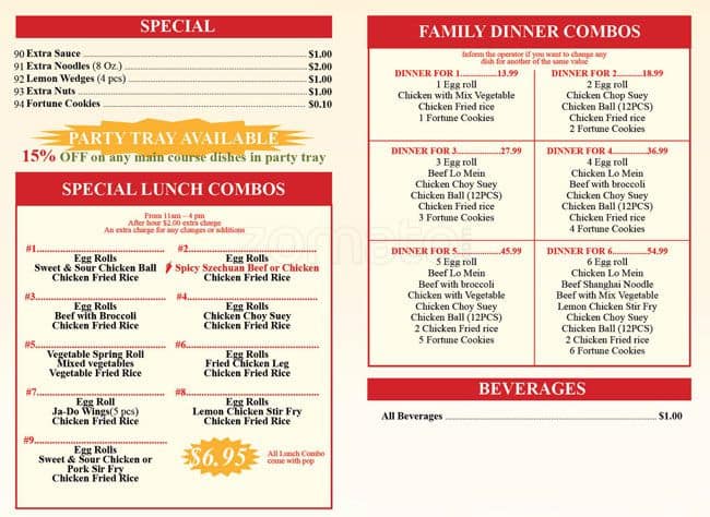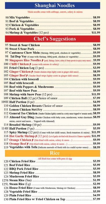 $6.95 lunch combos (plus HST) are the best deal in town and include one free canned soft drink. Huge portions. Can easily spread this out over 2 meals. Note lunch combos are $2 more after 4 pm. This is a CLEAN restaurant. Not the best ... tasting Chinese food in the world but more than satisfactory considering the price. No tables. Just a stand-up counter along the window. Read more