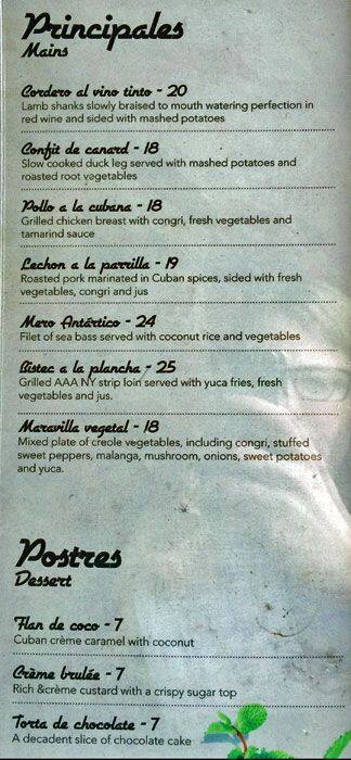 I visited here for Winterlicious Dinner with some friends. Service was excellent and the waiter was nice. The Ensalada Tropical salad was good, nothing special or unique about it. My friend had the soup of the day which was a black bean soup - this was delicious. For my main I had ... the Bistec a la Plancha. The portion size was impressive. I was very disappointed in the plating though. The steak was sort of thrown on top of the yuca fries with no thought. As a result, some of my fries got soggy which was a shame because the crispy ones were delicious. Personally I thought the steak could have done better with some sort of seasoning. My friend had the Sorpresa vegetal and I had a bit of a taste. This tasted pretty good. I had the Havana Club Creme Brulee for desert. The creme was well done, its short fall was the burnt sugar on top. Overall, I really liked the restaurant atmosphere and the yuca fries were a huge hit for me. Read more