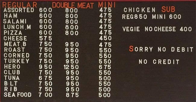 Giant old school classic subs done the right way, served up with fresh traditional toppings. nuthin fancy, great value.. Even if you're not hungry it's worth popping by just to say hi to George the owner/sandwich king. good vibes all day every day.