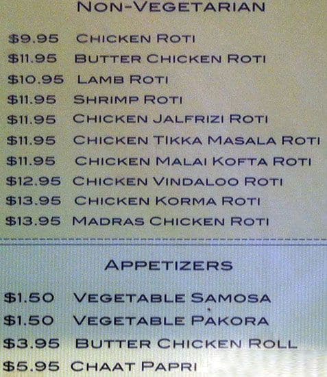 This is a small hidden gem of Toronto. Hands down the best butter chicken roti I have ever tried, and the service is fast and efficient. The staff are friendly, the portions are large, and I am never disappointed. Don't be fooled by the hole in the wall appearance!