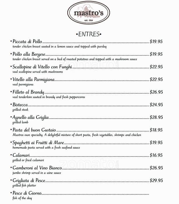 Mastro's Ristorante Italiano Mastro’s offers a true taste of Italy right in North York. From the moment you step inside, you’re greeted with warm hospitality by Rina and Roberto. The menu is a culinary journey through Italy, featuring authentic dishes bursting with flavor and made with the freshest ingredients. Start your meal ... with the antipasto platter or fried calamari or a delightful assortment of cured meats, cheeses, and marinated vegetables that perfectly sets the stage for what’s to come. The homemade pasta steals the show. Whether it’s the classic spaghetti con Frutti di Mare or the indulgent lasagna abruzzese, each dish is a masterpiece of taste and texture. Pair it with a glass of fine Italian wine recommended by their knowledgeable staff for the ultimate dining experience. Save room for dessert because the tiramisu here is out of this world. Layers of delicate ladyfingers soaked in espresso and mascarpone cheese, it’s a sweet finale that will leave you craving more. Beyond the food, the service at Mastro’s is top-notch. The staff is attentive and friendly, making you feel like part of the family from the moment you walk in. Whether you’re celebrating a special occasion or simply craving a taste of Italy, Mastro’s delivers an unforgettable dining experience that will keep you coming back for more Read more