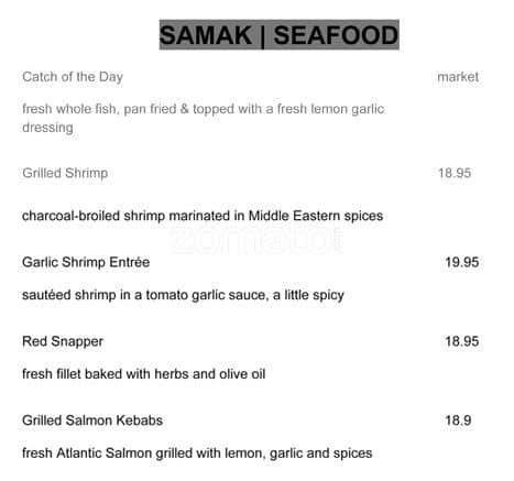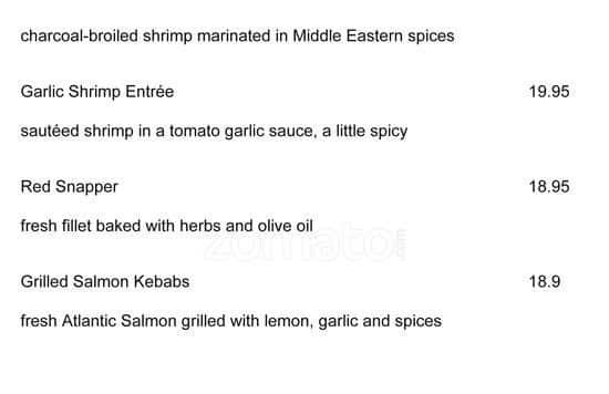 We were quick to be seated and the server was very attentive. Started off with hummus, Naan bread, french fries and falafel as appetizers then shared a salmon meal and a garlic shrimp dinner amongst 4 people which came with rice and grilled veggies. The food was delicious, and cooked ... at the perfect temperature. Will definitely make this part of my regular rotation. Read more