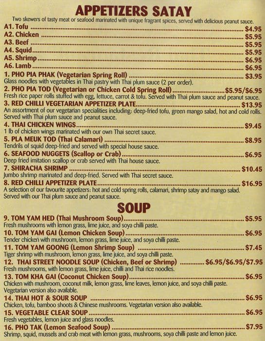 Red Chilli Thai offers an authentic culinary journey through Thailand with its vibrant menu, showcasing a variety of traditional Thai dishes. From spicy curries and tangy soups to delectable stir-fries and noodles, every dish is crafted with fresh ingredients and bold flavors. This cozy eatery in Toronto is a must-visit for anyone craving an unforgettable Thai dining experience.