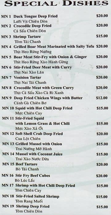 This Viet place offers some dishes that are not available at other Viet places. There are a variety of dishes, some are on the more exotic side. Most of which are reasonably priced. I liked the papaya salad with shrimp and pork belly. Will definitely come back and try their ... other dishes another time. Read more