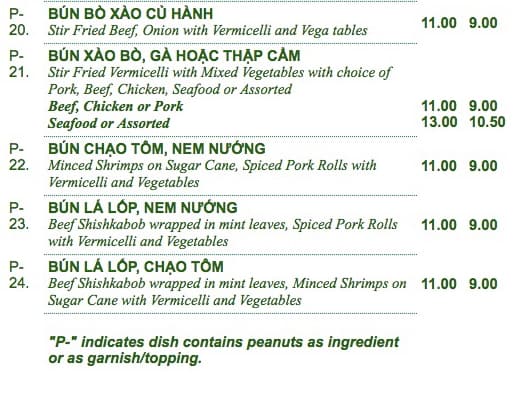 Ordered the plate # 56 and was really impressed with the quality, the portion size, the taste, the seasoning etc. Shrimp with curry and coconut milk on rice. The traditional soup with rare beef is also really good. Definitely recommend this place and look forward to returning again.