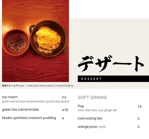 Really nice quiet and comfortable restaurant with very kind staff and delicious food. I came in hungry and ate until I could barely walk! They had items I was really happy to see such as Kinako-flavoured items like their kinako latte, and even had spicy takoyaki! Both hit the spot just ... right. I finished with their green tea creme brulee and it was so light and satisfying. I definitely recommend this restaurant! Read more