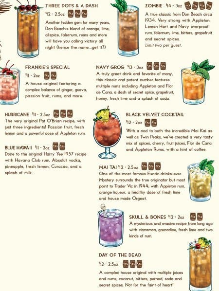 Definitely a must stop if you enjoy tiki drinks or want a fun tropical island vibe escape. The waiter and even other customers were friendly. You can look at the decor for ages, something in every corner, even decorated rest/washrooms. We just enjoyed a delicious cocktail from their extensive ... menu on the way to our hotel, and will definitely return to spend more time and try the food. Reservations recommended! Read more
