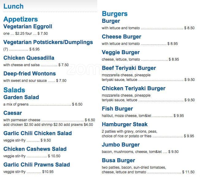 My partner and I both work in the area and go to Blue Moon several times a week. We love it there! We've been plowing through the menus, we try to pick something different each time we go there and so far I've loved everything (but the Blue Moon omelette ... is still my top pick!). The food looks and tastes just like a home-cooked meal, it's good for the soul. I particularly like to pick off the lunch menu because you get Chinese tea with your meal, yum! The staff are wonderful, one waitress in particular knows us very well and we love to chat with her. The older couple always wave to us and say hello. Not sure what the comments about only accepting cash are about-- we pay with visa every time we go! The combo meals are big-- we split one! It comes with a starter of soup and a spring roll or deep-fried wontons, an entree, and a little cup of icecream. For $12 if you're not dying of hunger it makes an amazingly cheap meal for two and will fill you up. Read more