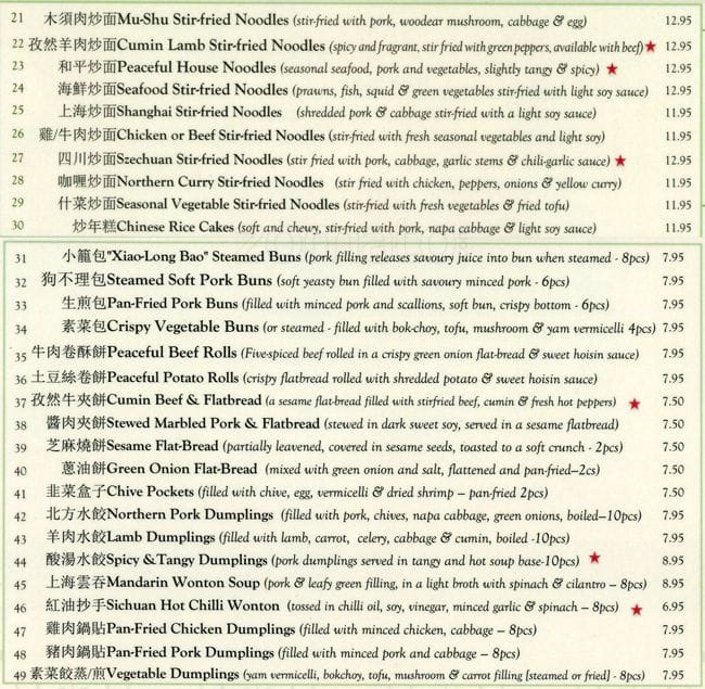 Enjoyed an excellent assortment of dishes at downtown Vancouver’s Seymour St. Peaceful Restaurant location late September. This restaurant was featured on the show Diners and Drive Ins by Guy Fieri. This is what made us chose this Chinese restaurant over others in the area. Wish we lived in Vancouver as I ... would be there weekly to eat. Food was that delicious! Restaurant was extremely clean and followed Covid protocols. Service was fast, efficient and accurate. Waters were brought out quickly (without even asking) which was appreciated as we were parched. A jug was put on our table so we could top up ourselves. Again appreciated as some of our dishes were spicy. It was a hard choice to make as many of the dishes appealed to us. We tried the Mandarin Wonton Soup (D-15). A bowl fed three of us perfectly to start. We then had the Panfried Dumplings (D-18), soft yet crisp with delicious juices oozing out as you took a bite. It came with 8 dumplings so plenty to sample for 3 of us. We then had the Sichuan Thousand Chilli Chicken (C-1) and the Shanghai Stir-fried Noodles (F-6). Both dishes were outstanding with presentation, quantity, tastes and quality! The chicken was in chunks lightly coated, juicy yet a bit of crunch. There were lots of chicken pieces as well as lots of crisp green beans accompanying it. Also tons of dried peppers which provided heat. When the noodle dish came we all thought we’d never finish it as it was heaping, however it was so flavourful that we devoured it! Our server checked in on us and even refilled our water jug without us having to ask. I highly recommend to check this place out. I know where I’ll be dining the next time I’m visiting Vancouver! Return visit May 2022, changed things up a bit. Finally tried the Beef Rolls that Guy Fieri raved about and he was spot on . Flavours and juiciness with every bite! Also tried the Kung pao chicken and mu-shu stir fried noodle dishes. Both were very tasty. Once again service was prompt and not a spec of food left! Deliciously yummy! Read more