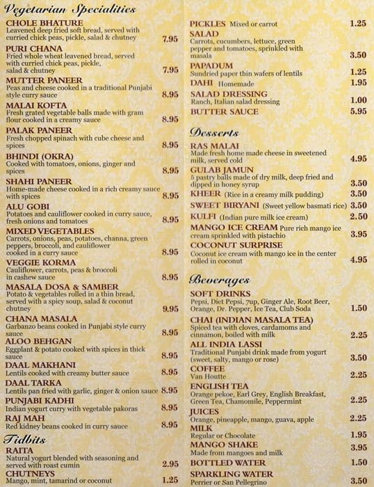 I've been here twice but never more. Perhaps the only one thing that's nice is the owner/manager's friendly demeanor and follow-up about orders and take good care of you. And the washrooms were clean. Pretty sure the food is NOT authentic - be it the Mughlai main course, the chaat snacks, or ... the South Indian seafood gravies. Food was bland and insipid, completely different to what we Indians are used to. The filling for the samosa and aloo tikki was the same. All 4 snacks were prepared earlier and just deep fried to heat them again when ordered. Interiors were jaded and it seems renovations were last done in 90s. I did see many local families from Punjabi Market area (born here desis) and also Caucasians that ordered in and also constant stream of delivery app drivers here. The good reviews from them perhaps means the food is targeted towards them and catered for their liking. However if you're looking for an authentic experience this isn't it. Stay away if you're Indian for sure. Himalaya opposite to this, although not perfect, is much better, both quality and menu wise. Read more