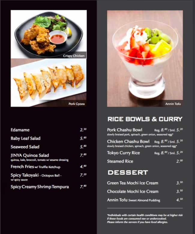 Ramen here was OK. Small location in Kerrisdale. It does get pretty busy for dinner. The woman who served us was attentative and respectful to us and our baby boy. The Ramen was alright. It wasn't the best Ramen we've had. But it certainly wasn't the worse and it was ... kind of expensive! $14 for a bowl of Ramen is pricy!! It's worth a try maybe once or twice. Parking is only on the street and you'll have to pay for street parking of course. There is free parking about five minutes away. Overall. The food was OK, the service was good by our waitress. And the ambiance and atmosphere was decent. This wasn't our first time at JINYA and the menu has changed. They don't have the traditional Shoyu Ramen on the menu!! They've got a variety of Ramens on their menu. But not many of them appealed to my wife and I. I think there are better options for Ramen in the city for sure. But JINYA is worth a try once, just so you can say you've been there. Read more