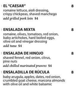 I have visited this place a couple of times. I found the food from my first visit better (in terms of temperature and seasoning), but the freshness was really great both times. The second time I went, the sangria tasted more watered down, the peppers were over cooked, and the paella ... was not seasoned very well. The meatballs were cold, and the shrimps were undercooked. Some plates I recommend is the paella, chicken wings, and the shishito peppers. I am planning on my third visit to hopefully make up for my last visit. Read more