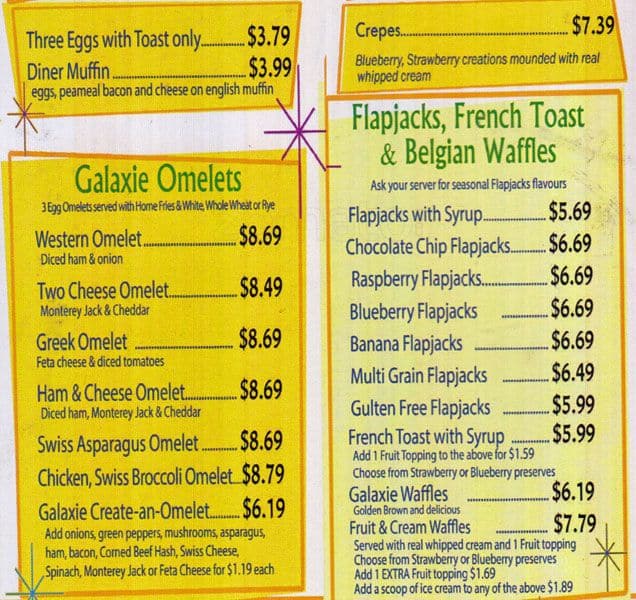 Galaxie Diner in Vaughan, Ontario, is a culinary gem that captures the essence of classic American diners with a Canadian twist. Known for its warm, retro atmosphere, it serves up a menu filled with hearty, comfort food favorites. From fluffy pancakes and savory omelets to mouthwatering burgers and milkshakes, every dish is made to satisfy cravings at any time of the day. A must-visit spot for food enthusiasts!