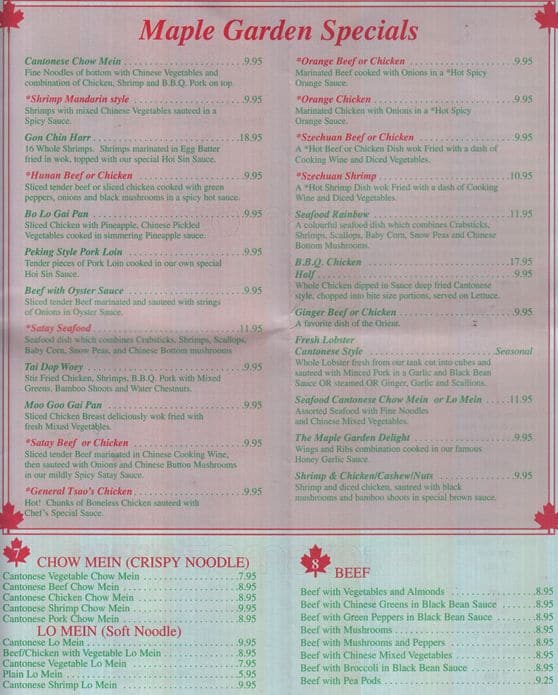 Maple Garden Chinese offers a delightful dining experience in the heart of Vaughan, serving an array of authentic Chinese cuisine. Perfect for family dinners or a quick takeout option, their menu boasts traditional flavors and beloved dishes that cater to various palates. Enjoy their welcoming atmosphere and indulge in the rich, culinary heritage of China right in your local neighborhood.