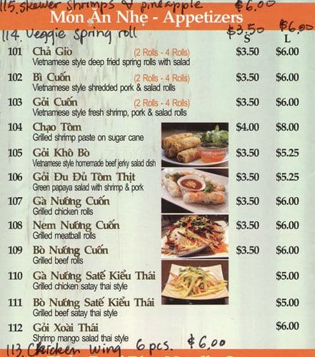 Nothing beats a bowl of hot pho on a cold Winter day! Food, price and service were all decent. I would appreciate it if the pho broth was a little hotter. I found mine more on the warm side.